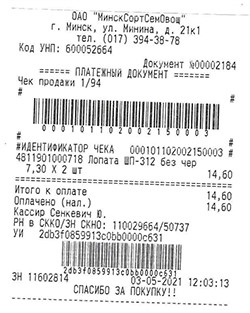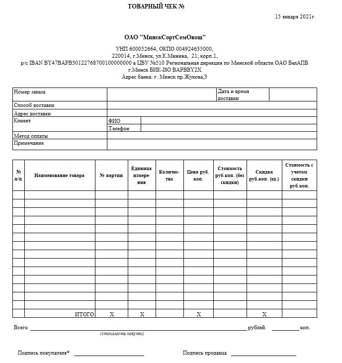 ВНИМАНИЕ! До получения подтверждения оплаты со стороны ОАО «МинскСортСемОвощ», ОБЯЗАТЕЛЬНО сохраняйте квитанцию или чек об оплате.